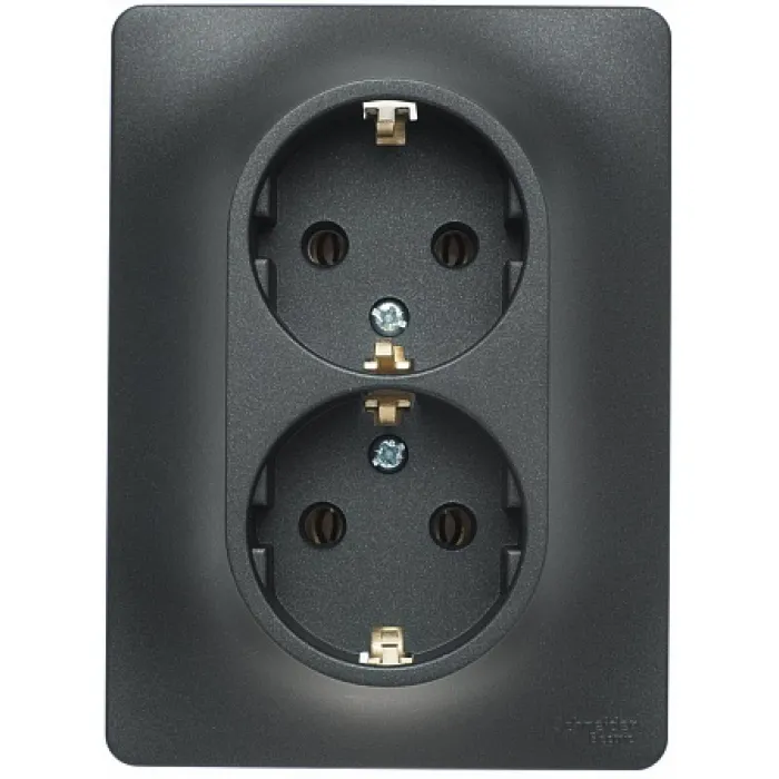 Розетка двухместная Schneider Electric GLOSSA, скрытый монтаж, с заземлением, антрацит, GSL000724, Нижний Новгород
