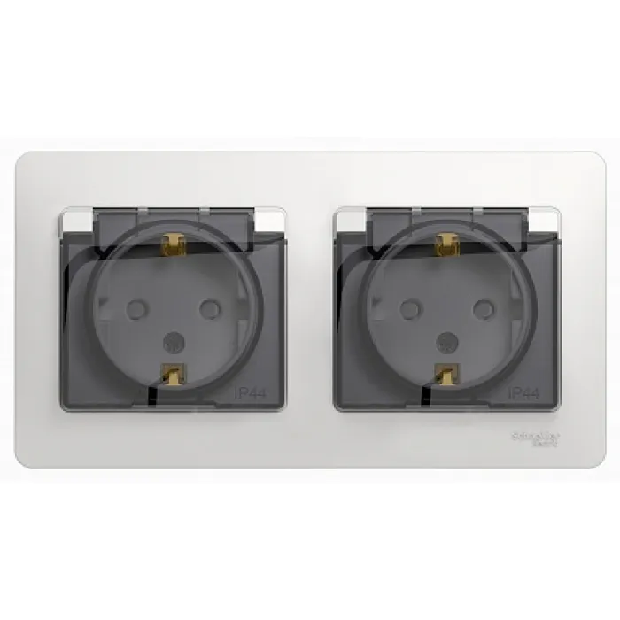 Розетка двухместная Schneider Electric GLOSSA, скрытый монтаж, с заземлением, с крышкой, со шторками, белый, GSL000147, Нижний Новгород