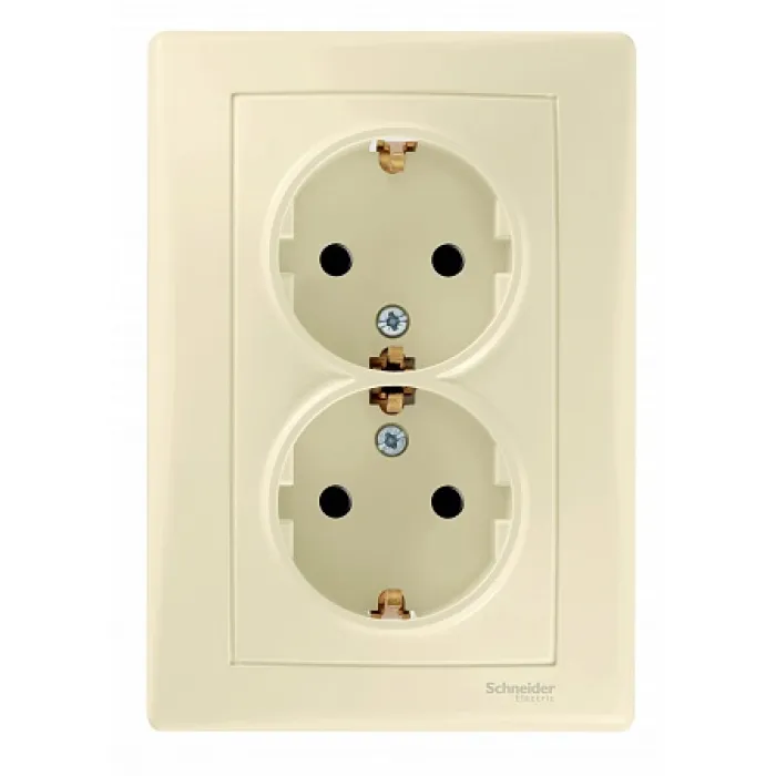 Розетка двухместная Schneider Electric SEDNA, скрытый монтаж, с заземлением, бежевый, SDN3000647, Нижний Новгород