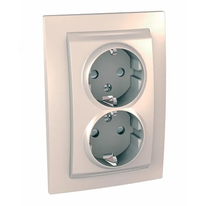 Розетка двухместная Schneider Electric UNICA, скрытый монтаж, с заземлением, со шторками, бежевый, MGU23.067.25D, Нижний Новгород