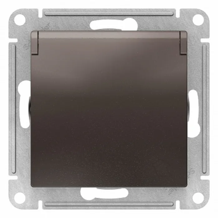 Розетка Schneider Electric ATLASDESIGN, скрытый монтаж, с заземлением, с крышкой, со шторками, мокко, ATN000646, Нижний Новгород