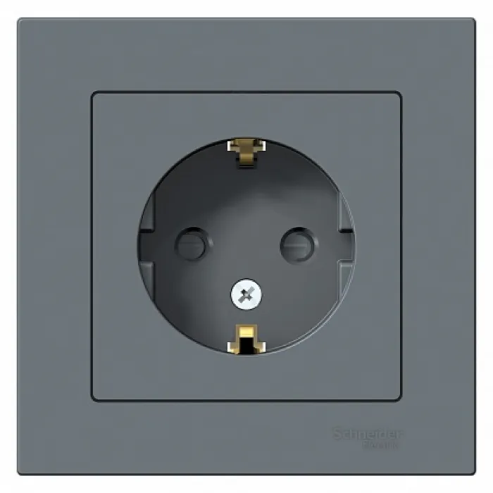 Розетка Schneider Electric ATLASDESIGN, скрытый монтаж, с заземлением, со шторками, грифель, ATN000744, Нижний Новгород