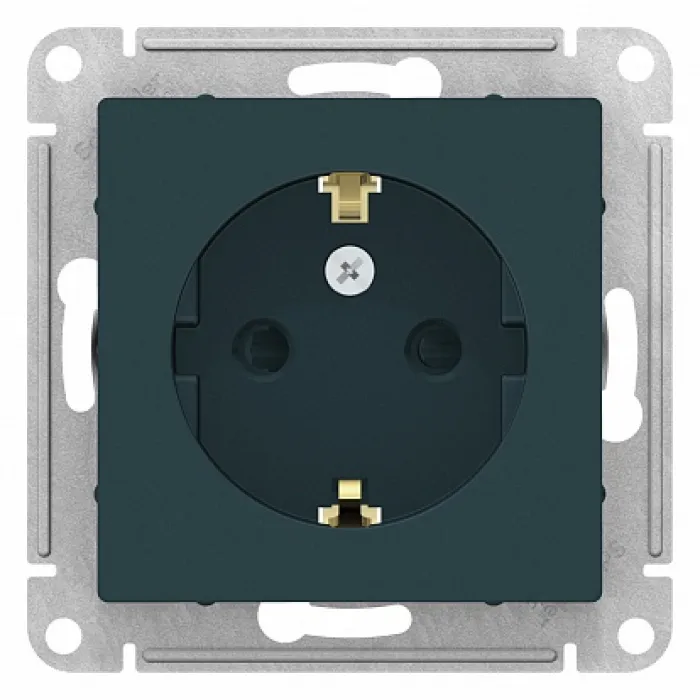 Розетка Schneider Electric ATLASDESIGN, скрытый монтаж, с заземлением, со шторками, изумруд, ATN000845, Нижний Новгород