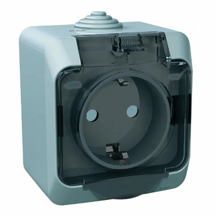 Розетка Schneider Electric ETUDE, открытый монтаж, с заземлением, с крышкой, со шторками, серый, PA16-044C, Нижний Новгород