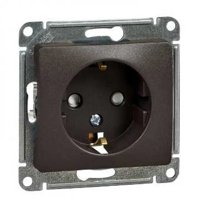 Розетка Schneider Electric GLOSSA, скрытый монтаж, с заземлением, со шторками, шоколад, GSL000845, Нижний Новгород