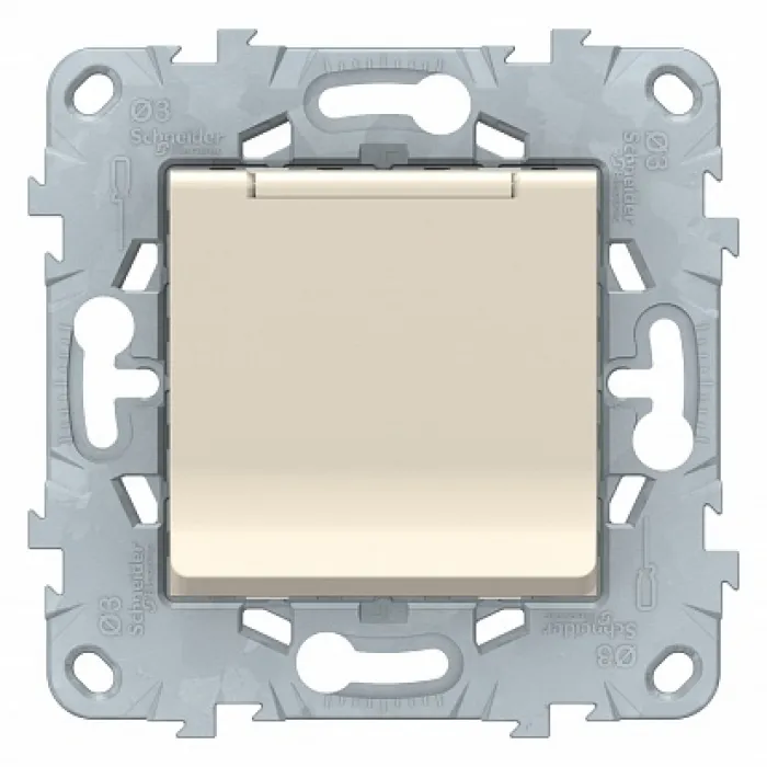 Розетка Schneider Electric UNICA NEW, скрытый монтаж, с заземлением, с крышкой, со шторками, бежевый, NU503744TA, Нижний Новгород