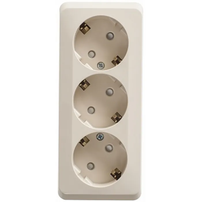 Розетка трехместная Schneider Electric ETUDE, открытый монтаж, с заземлением, со шторками, кремовый, PA16-012K, Нижний Новгород