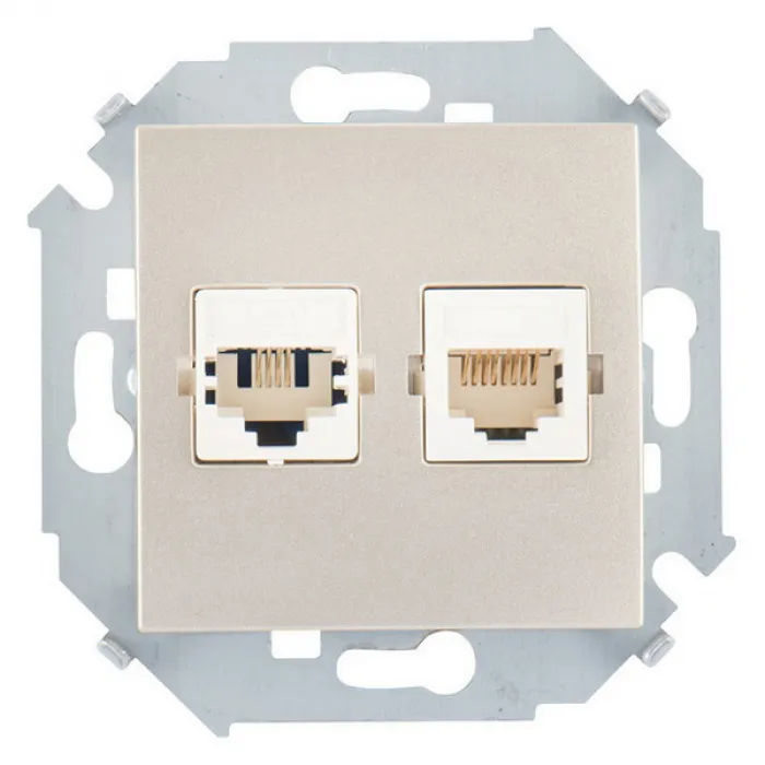 Розетка компьютерная двойная RJ45 категории 5е от компании Systimax Simon 15 в цвете шампань - это качественное и надежное устройство для подключения компьютеров, сетевого оборудования и других устройств к сети Интернет. Двойная конструкция позволяет подключить два устройства одновременно, обеспечивая удобство использования. Розетка выполнена в соответствии с высокими стандартами качества и обеспечивает стабильное и надежное соединение. Цвет шампань придаст интерьеру элегантность и стиль.