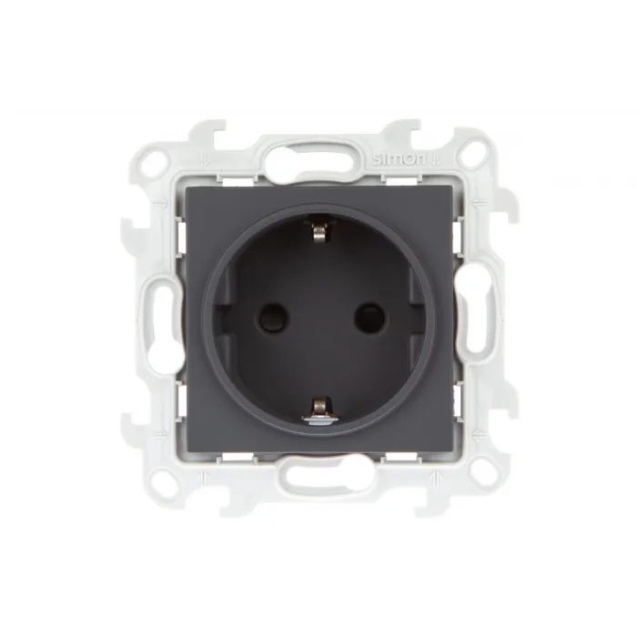Розетка Simon SIMON 24 HARMONIE, скрытый монтаж, с заземлением, со шторками, графит, 2450432-038, Нижний Новгород