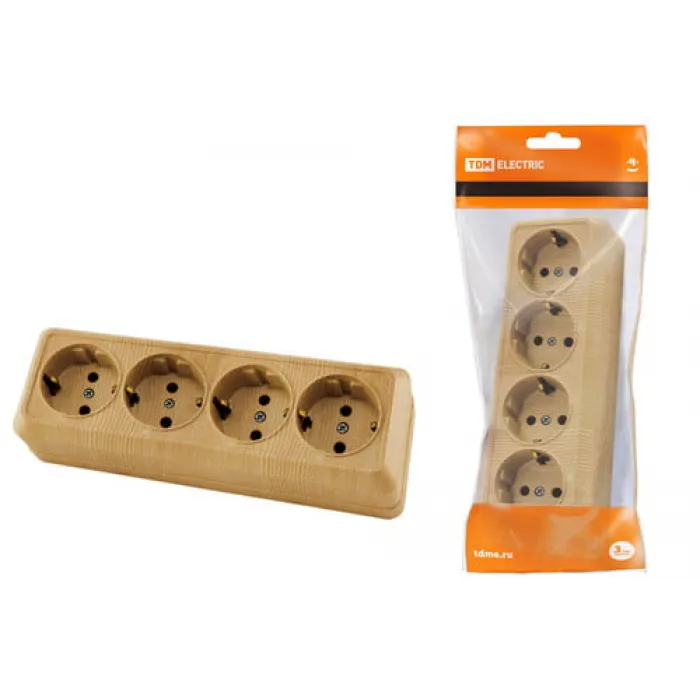 Розетка 4-х местная горизонтальная 2П+3 открытой установки IP20 16A сосна «Ладога» TDM SQ1801-0430, Нижний Новгород