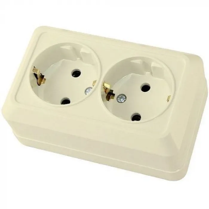 Розетка двухместная TDM ЛАДОГА, открытый монтаж, с заземлением, слоновая кость, SQ1801-0213, Нижний Новгород