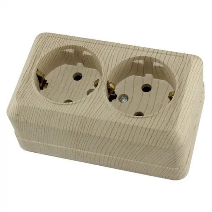 Розетка двухместная TDM ЛАДОГА, открытый монтаж, с заземлением, сосна, SQ1801-0056, Нижний Новгород