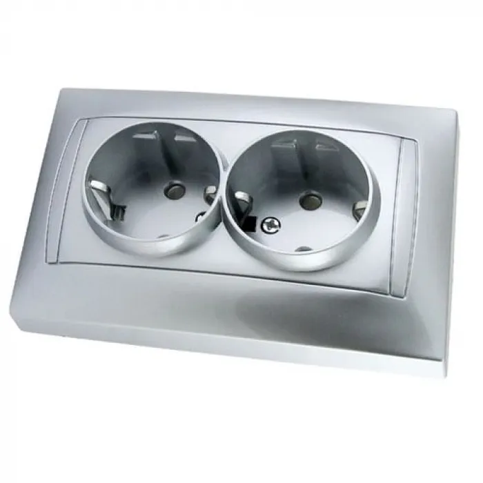 Розетка двухместная TDM ЛАМА, скрытый монтаж, с заземлением, серебряный металлик, SQ1815-0213, Нижний Новгород
