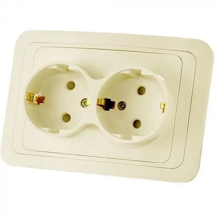 Розетка двухместная TDM ВАЛДАЙ, скрытый монтаж, с заземлением, со шторками, слоновая кость, SQ1804-0126, Нижний Новгород