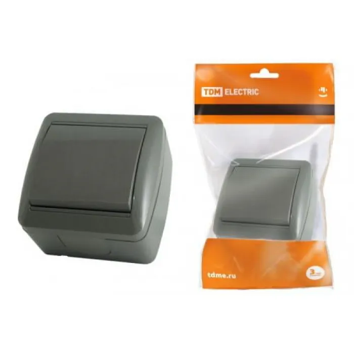 TDM Селигер Серый Выключатель 1-клавишный открытая установка IP44 10А, Нижний Новгород