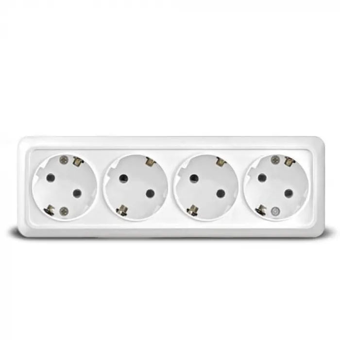 В нашем магазине Главэлектрика в Нижнем Новгороде, вы можете приобрести с доставкой по Нижнему Новгороду товар Розетка 4-местная UNIVersal Олимп о/п, с з/к белая 16А 220В 1163.