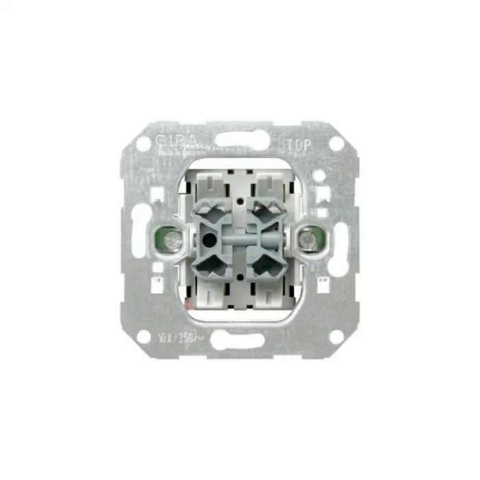 Переключатель кнопочный 2-клавишный 10А 250В Gira механизм - это качественное устройство для управления освещением или другими электрическими устройствами в помещении. С помощью этого переключателя можно легко и удобно включать и выключать электрические приборы одним нажатием кнопки.Данный переключатель имеет две кнопки, что позволяет управлять двумя независимыми цепями освещения или другими устройствами. Он поддерживает напряжение до 250В и ток до 10А, что обеспечивает надежную и безопасную работу.