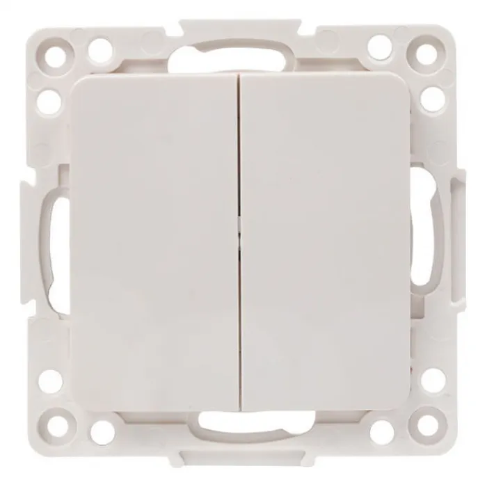 Белый цвет корпуса выключателя позволяет легко интегрировать его в любой интерьер. Механизм выполнен в стильном и современном дизайне, что делает его не только функциональным, но и эстетически привлекательным элементом.