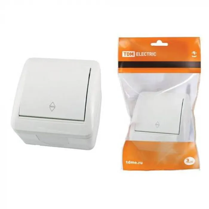 Переключатель 1-клавишный TDM СЕЛИГЕР, открытый монтаж, белый, SQ1818-0011, Нижний Новгород