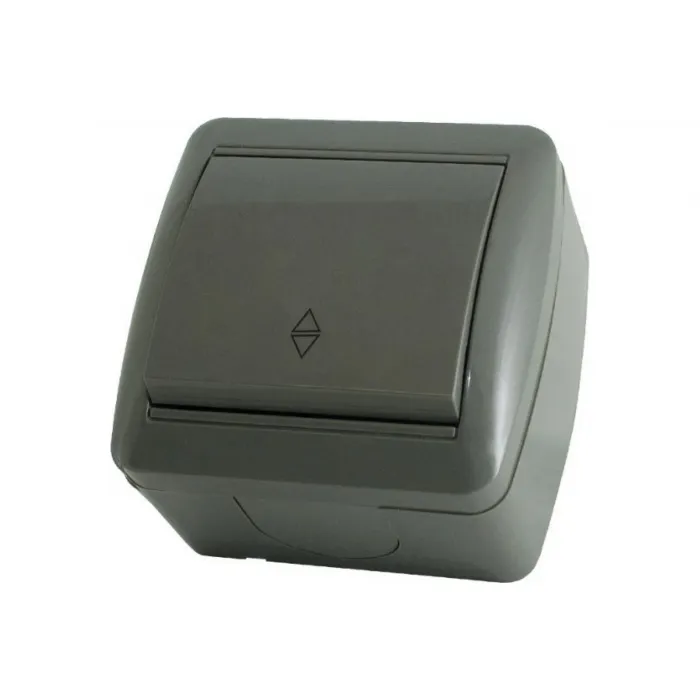 TDM Селигер Серый Выключатель на 2 направления 1-клавишный открытая установка IP44 10А SQ1818-0111 - надежный и безопасный выбор для управления электрическими цепями в различных средах.