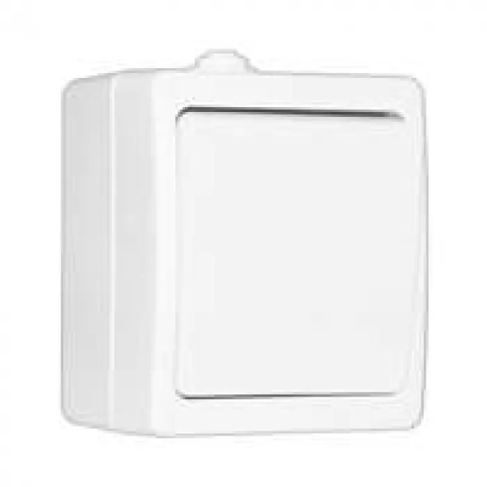 Выключатель выполнен в белом цвете, что позволяет его легко вписать в любой интерьер. Он имеет удобный и простой дизайн, который позволяет легко использовать его и контролировать работу электрических устройств.