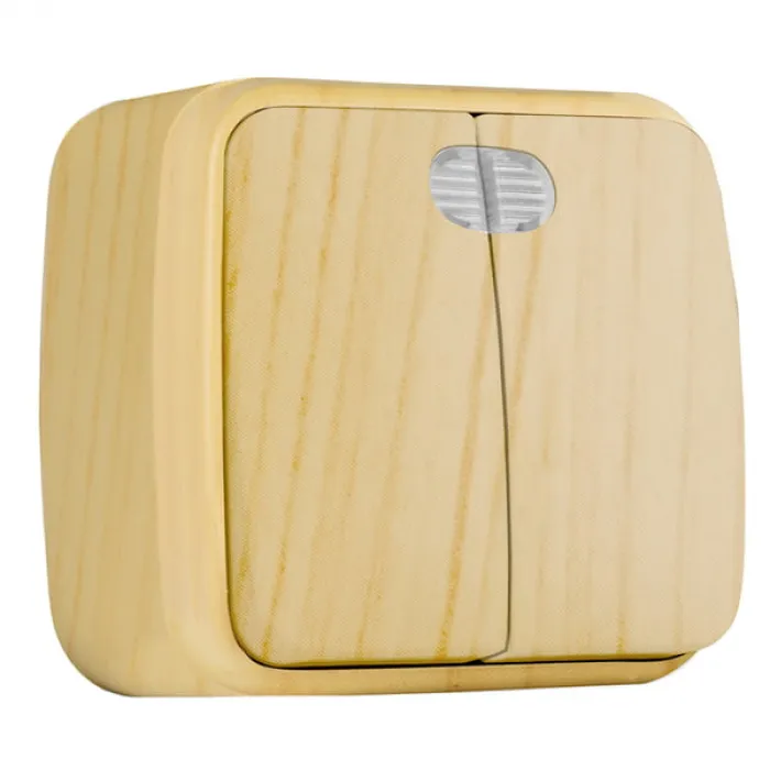 Выключатель 2-клавишный EKF МИНСК, с подсветкой, открытый монтаж, светлое дерево, EGV10-123-30, Нижний Новгород