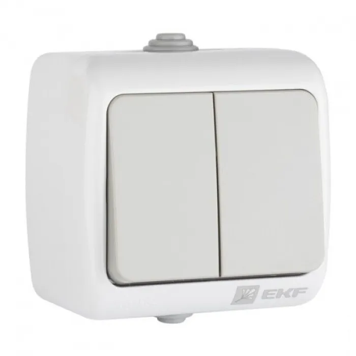 Выключатель 2-клавишный EKF МУРМАНСК, открытый монтаж, серый, EFV10-023-30-54, Нижний Новгород