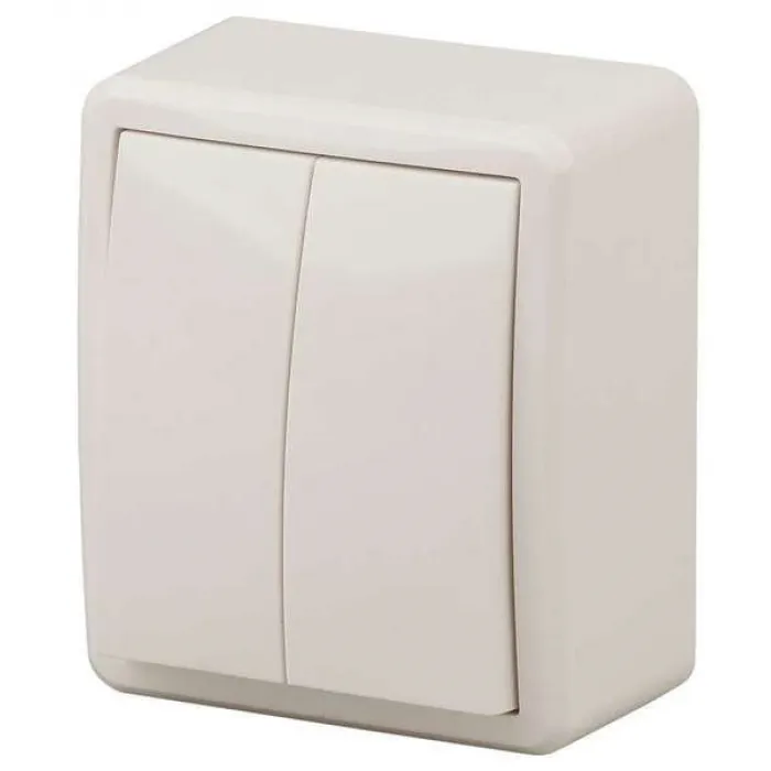 Выключатель имеет двойную конструкцию, позволяющую управлять двумя независимыми электрическими цепями. Кроме того, он оснащен подсветкой, что облегчает его использование в темных помещениях.