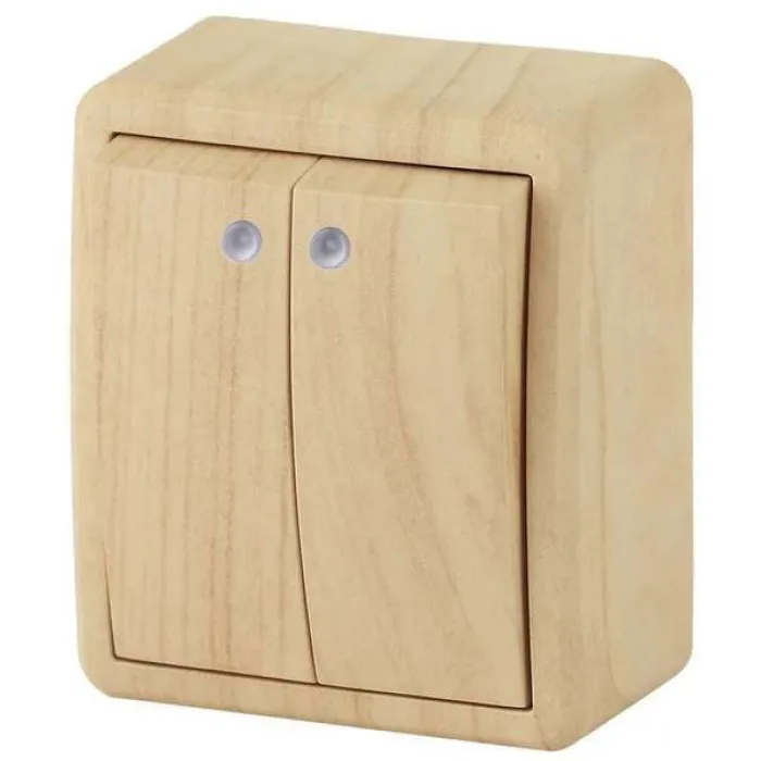 11-1205-11 ЭРА Выключатель двойной с подсветкой, 10АХ-250В, IP20, ОУ, Эра Эксперт, сосна, Нижний Новгород
