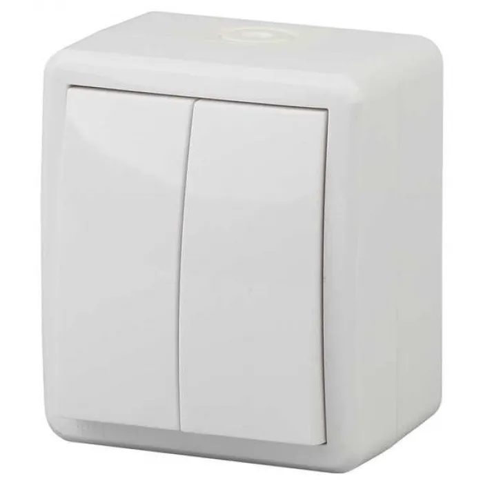 11-1405-01 ЭРА Выключатель двойной с подсветкой IP54, 10АХ-250В, ОУ, Эра Эксперт, белый, Нижний Новгород
