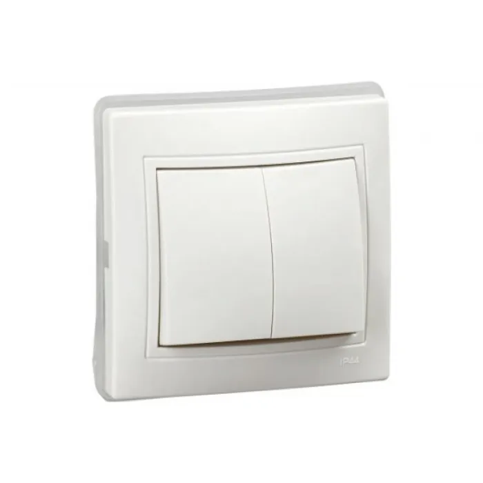 Белый двухклавишный выключатель KVARTA ВС10-2-0-КБ-44 10А IP44 - это надежный и стильный выбор для вашей электрической системы.