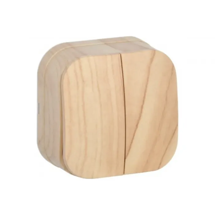 Выключатель изготовлен из прочных и долговечных материалов, что гарантирует его долгий срок службы. Дизайн выключателя выполнен в стильном исполнении с имитацией сосновой древесины, что позволяет легко вписать его в любой интерьер.