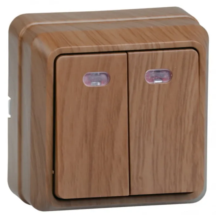 Выключатель 2-клавишный IEK ОКТАВА, с подсветкой, открытый монтаж, дуб, EVO21-K04-10-DC, Нижний Новгород