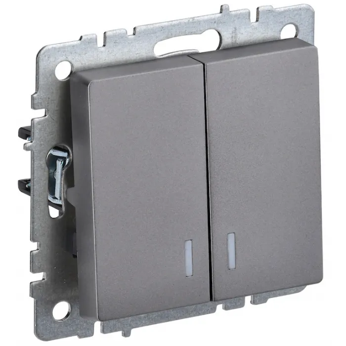 Выключатель двухклавишный с индикацией IEK BRITE 10А ВС10-2-1-БрС сталь IEK, BR-V20-1-10-K46, Нижний Новгород