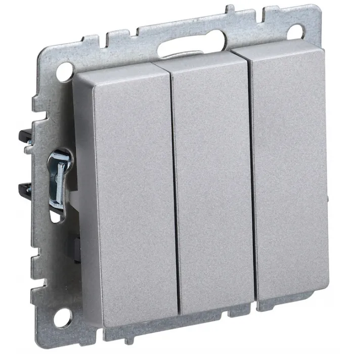 Выключатель трехклавишный IEK BRITE 10А ВС10-3-0-БрА алюминий, BR-V30-0-10-K47, Нижний Новгород