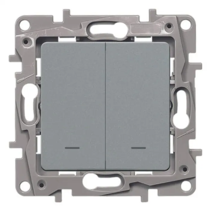 В нашем магазине Главэлектрика в Нижнем Новгороде, вы можете приобрести с доставкой по Нижнему Новгороду товар Выключатель 2-клавишный Legrand ETIKA, с подсветкой, скрытый монтаж, алюминий, 672404.