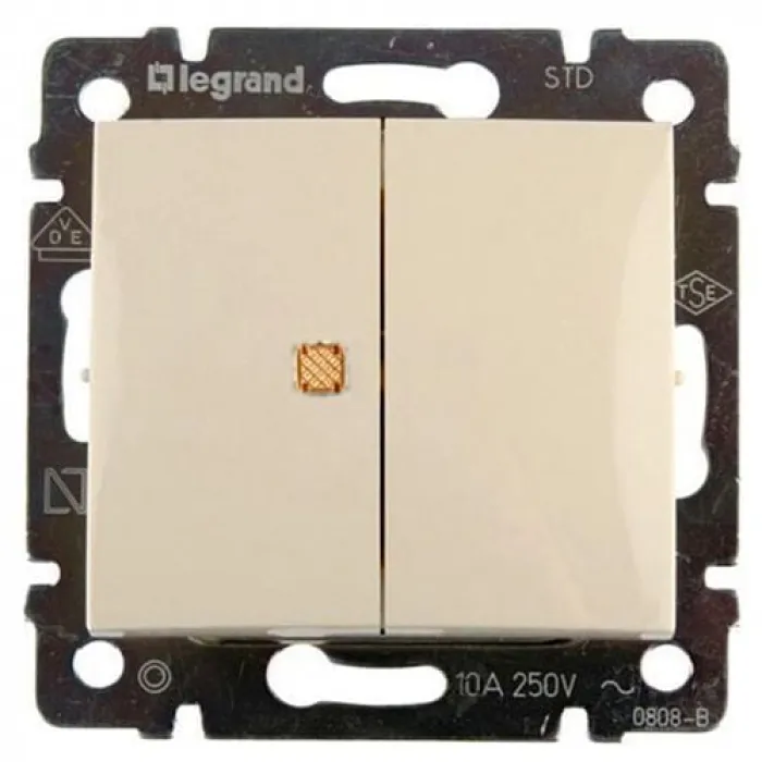 Выключатель 2-клавишный Legrand VALENA CLASSIC, с подсветкой, скрытый монтаж, слоновая кость, 774345, Нижний Новгород
