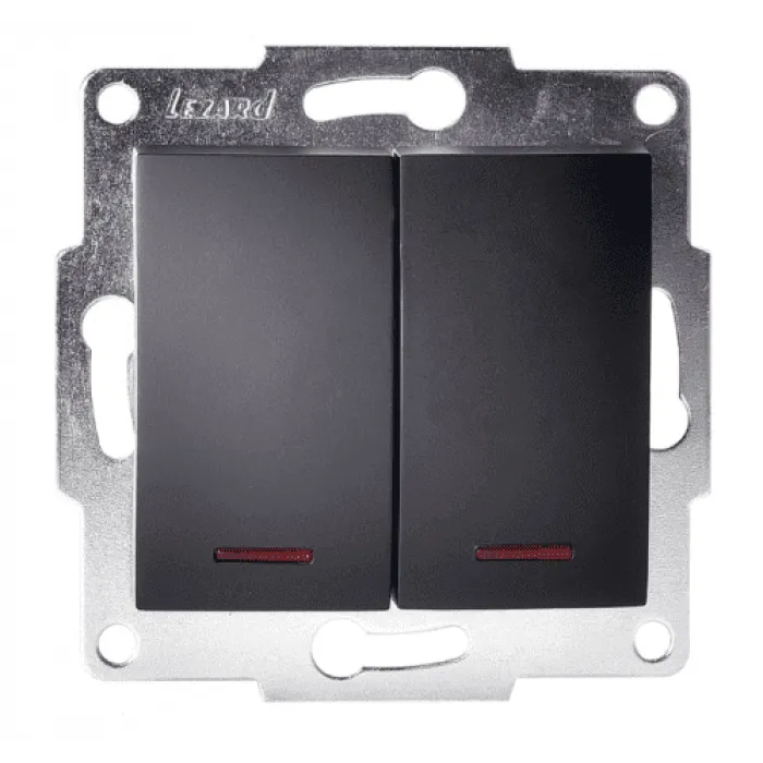 Механизм выкл. 2-кл. СП KARINA 10А IP20 с подсветкой черн. бархат Lezard 707-4288-112, Нижний Новгород