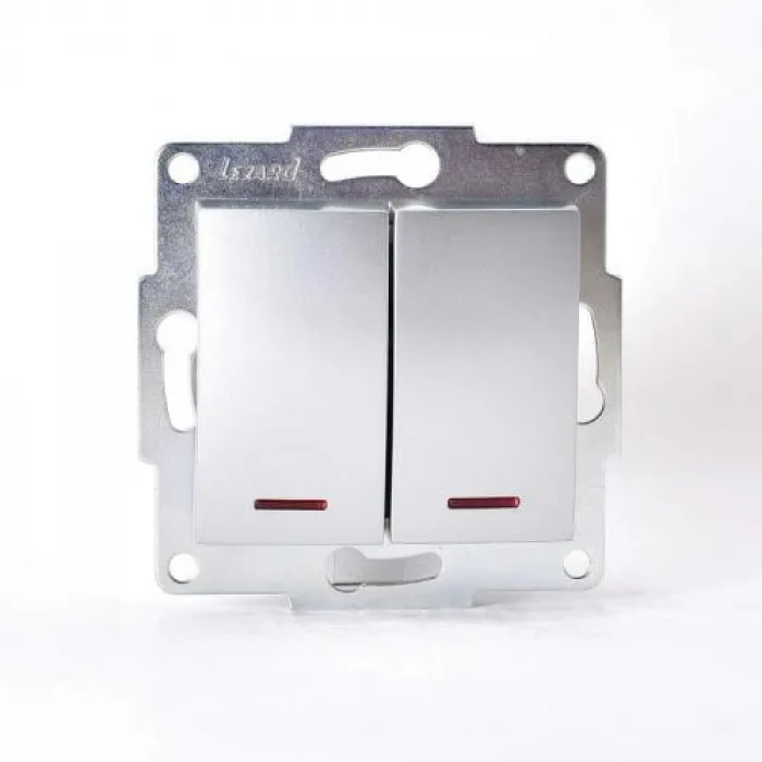 Механизм выключателя двухклавишного типа серии KARINA от компании Lezard - это стильное и функциональное устройство для управления освещением в помещении. Выключатель имеет номинальную мощность 10А и защиту от пыли и влаги по стандарту IP20. Изделие выполнено в серебристом матовом цвете, что придает ему современный и элегантный внешний вид. Подсветка клавиш делает использование выключателя удобным даже в темное время суток. Отличное сочетание качества, дизайна и функциональности для вашего дома или офиса.