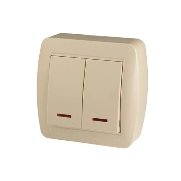 Выключатель Lezard Demet 2-клавишный с подсветкой О/П кремовый 711-0300-112, Нижний Новгород