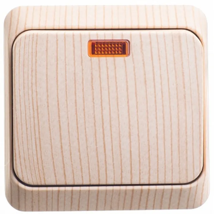 Выключатель 1-клавишный Schneider Electric ЭТЮД, с подсветкой, открытый монтаж, сосна, BA10-005D, Нижний Новгород