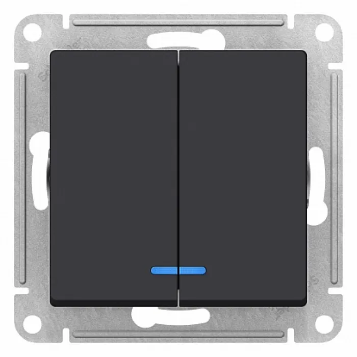 Выключатель 2-клавишный Schneider Electric ATLASDESIGN, с подсветкой, скрытый монтаж, карбон, ATN001053, Нижний Новгород