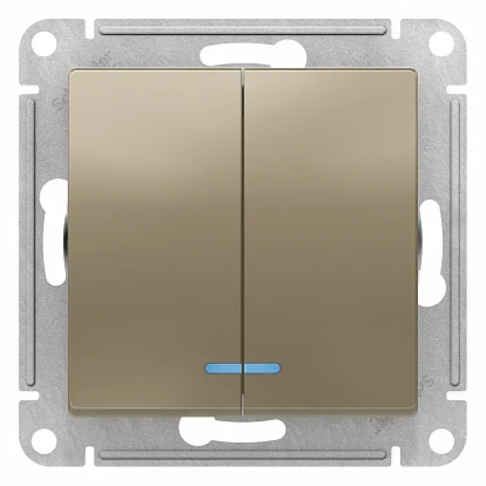 Выключатель 2-клавишный Schneider Electric ATLASDESIGN, с подсветкой, скрытый монтаж, шампань, ATN000553, Нижний Новгород