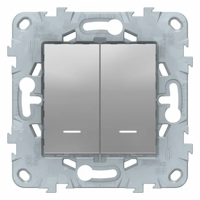 Выключатель 2-клавишный Schneider Electric UNICA NEW, с подсветкой, скрытый монтаж, алюминий, NU521130N, Нижний Новгород