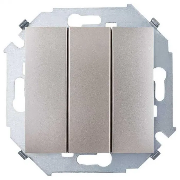 Выключатель трехклавишный 10А 250В винтовой зажим Simon 15, шампань - отличный выбор для тех, кто ценит качество, надежность и стиль в каждой детали своего интерьера.