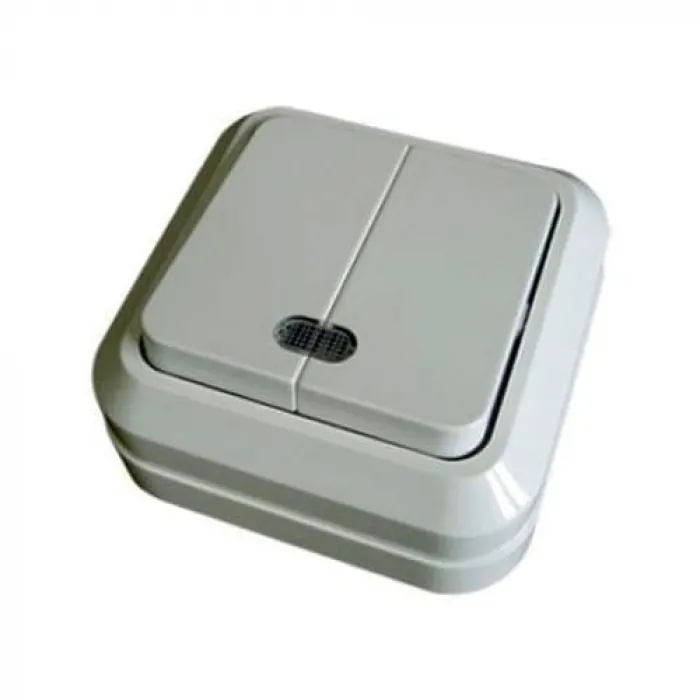 Выключатель 2-клавишный TDM ЛАДОГА, с подсветкой, открытый монтаж, белый, SQ1801-0007, Нижний Новгород