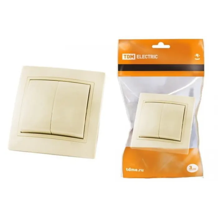 Выключатель 2-клавишный TDM ТАЙМЫР, скрытый монтаж, слоновая кость, SQ1814-0102, Нижний Новгород