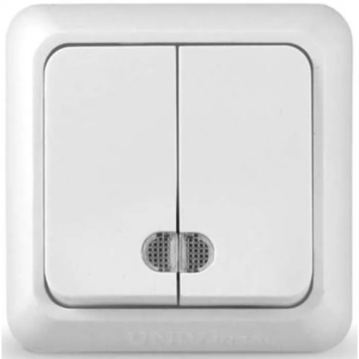 Выключатель UNIVersal Олимп 2-клавишный с подсветкой ОП 10А 220В белый О0123, Нижний Новгород