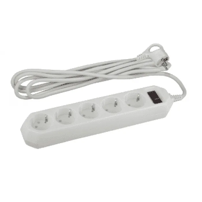 Удлинитель - сетевой фильтр 5 мест 10А пластик белый шнур 5м ПВС IP20 с выключателем ЭРА (Энергия света) Форма корпусаПрямоугольн.