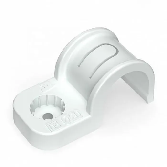 Крепеж-скоба пластиковая односторонняя для прямого монтажа белая в п/э д20 (50/600 уп/кор) Промрукав, Нижний Новгород